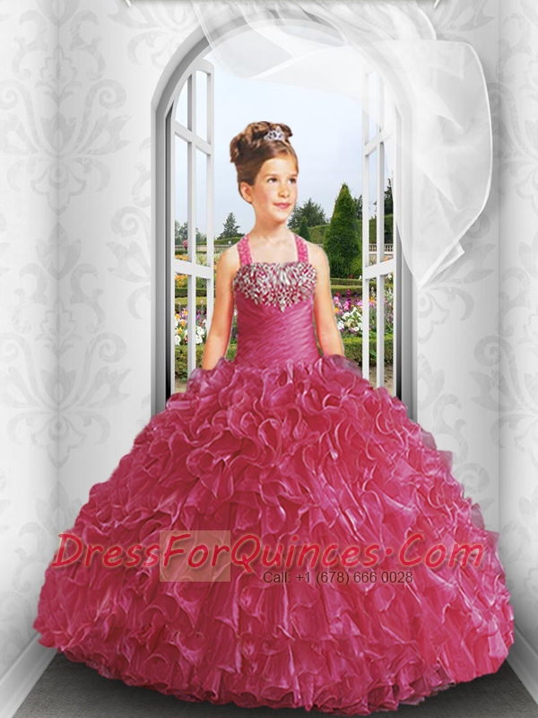 New Style Straps Red Little Girl Pageant Dress with Appliques and Ruffles
