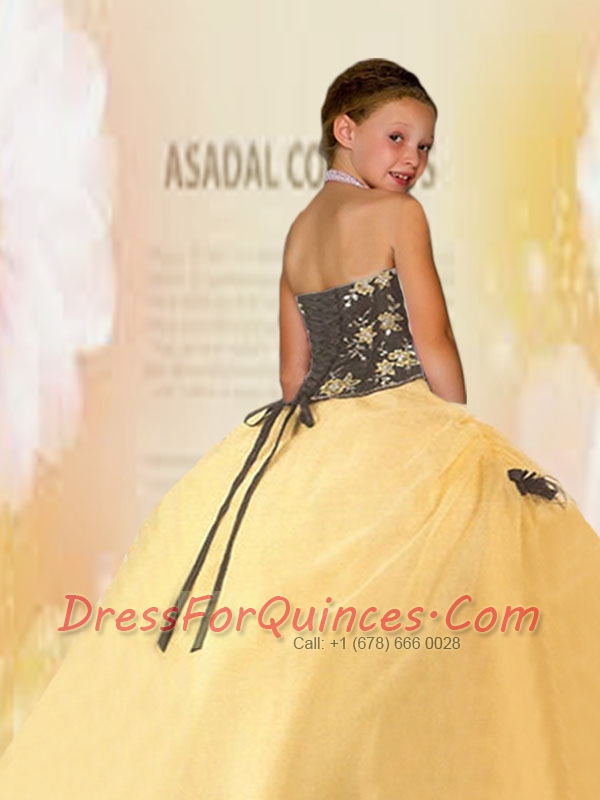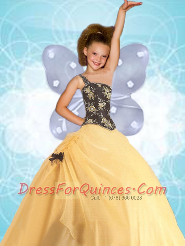 Newest One Shoulder Yellow Little Girl Pageant Dress with Appliques