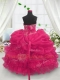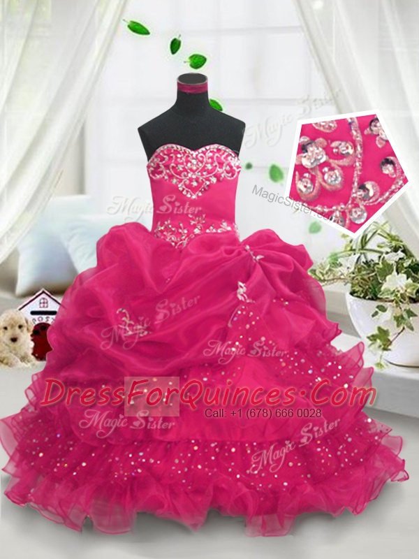 Pick Ups Ruffled Floor Length Ball Gowns Sleeveless Hot Pink Girls Pageant Dresses Lace Up