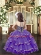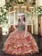 Popular Rust Red Lace Up Halter Top Beading and Ruffled Layers Kids Formal Wear Organza Sleeveless