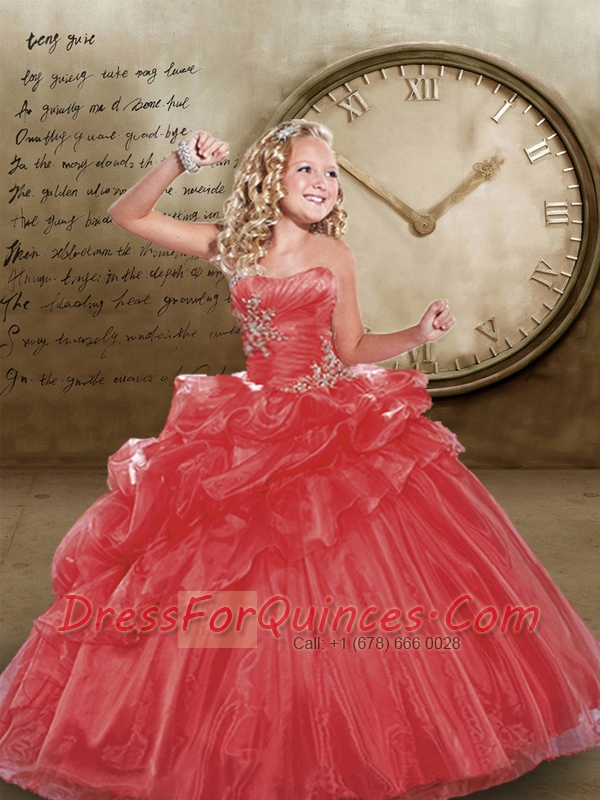 Popular Strapless Red Little Girl Pageant Dress with Appliques and Pick-ups