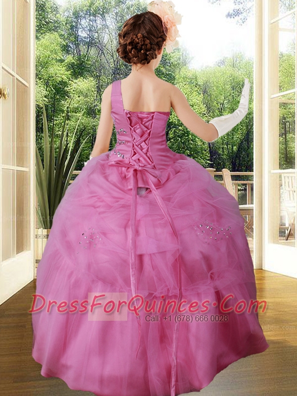 Pretty Ball Gown Beading One Shoulder Rose Pink Little Gril Pageant Dress