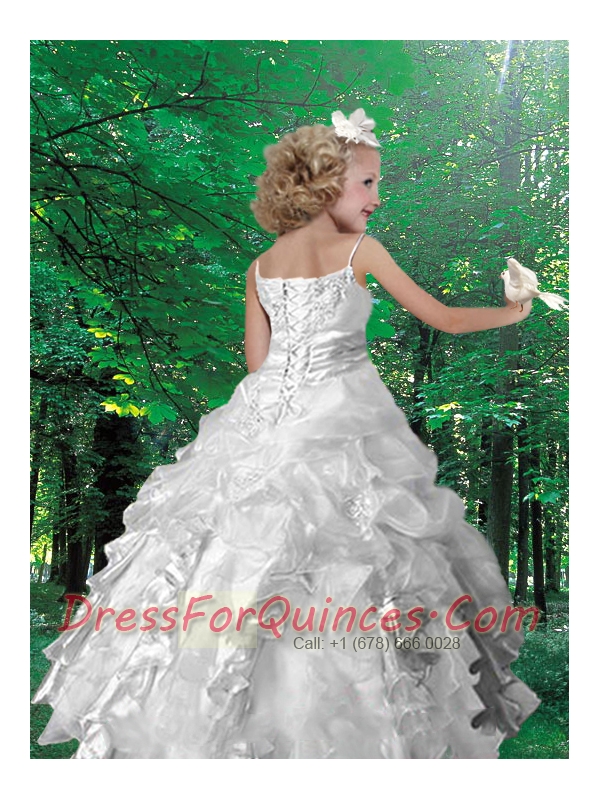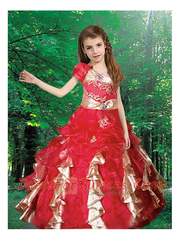 Pretty Ball Gown Spaghetti Straps Little Girl Pageant Dress with Appliques Ruffles in Red