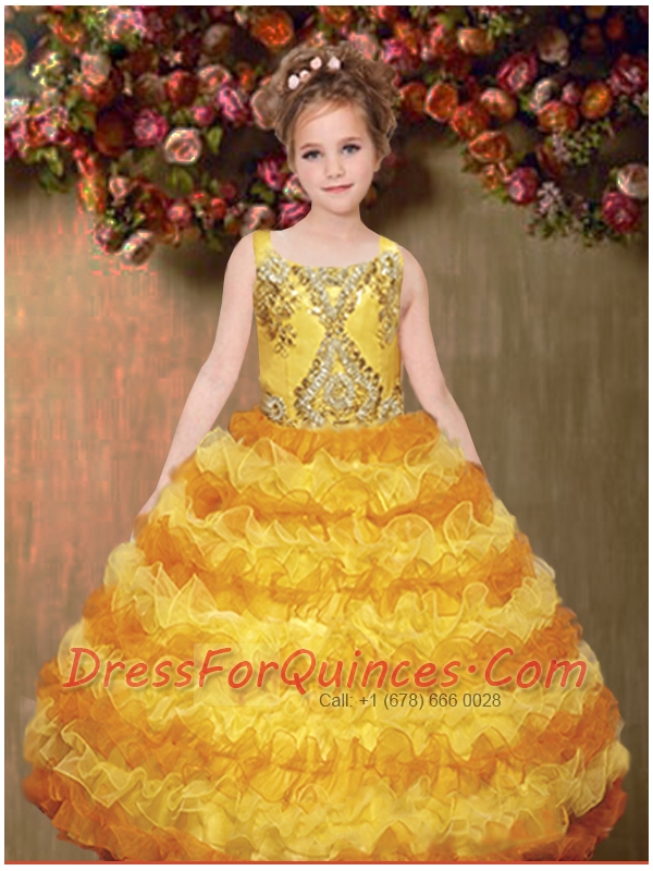 Pretty Ball Gown Yellow Straps Beading Little Girl Pageant Dresses with Ruffles for 2014