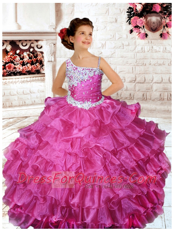 Pretty Halter Beading Hot Pink Little Gril Pageant Dress with Side Zipper