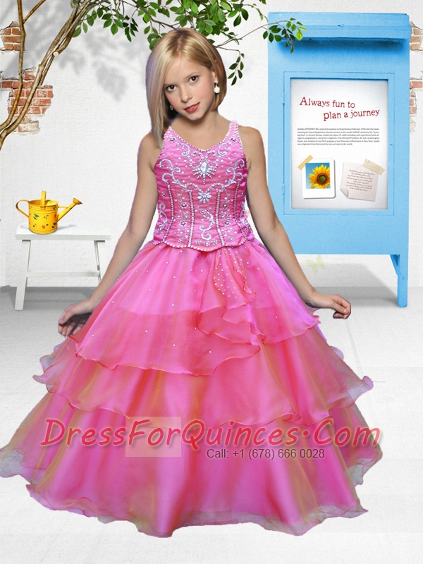 Pretty Hot Pink 2014 Little Gril Pageant Dress with Beading