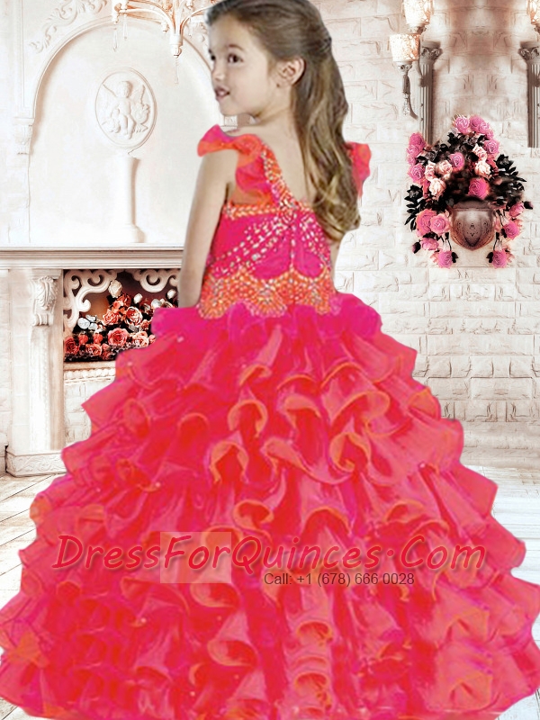 Pretty Scoop 2014 Little Girl Pageant Dress with Beading Ruffles in Red