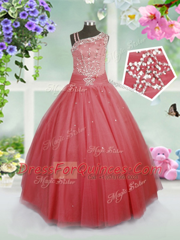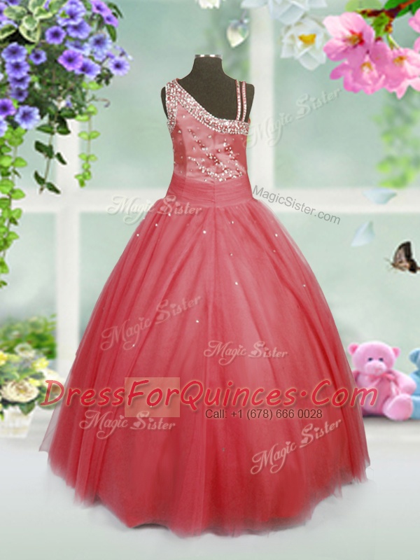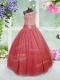 Pretty Watermelon Red Sleeveless Beading Floor Length Little Girls Pageant Dress Wholesale