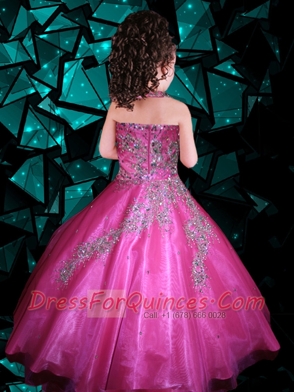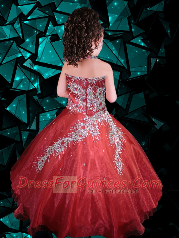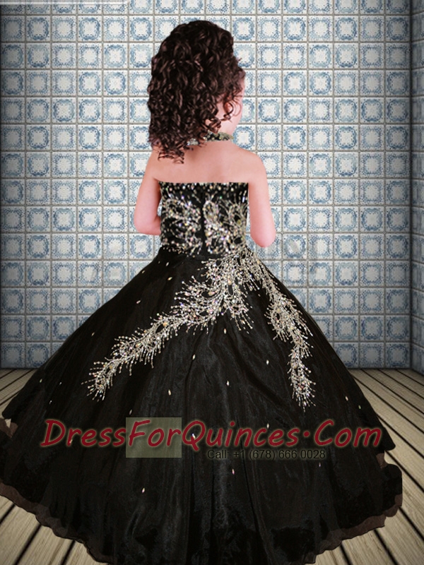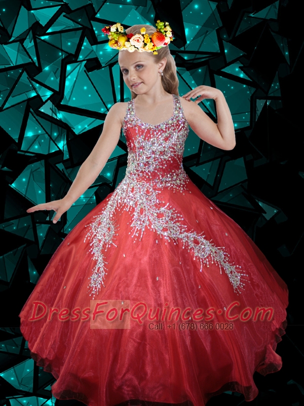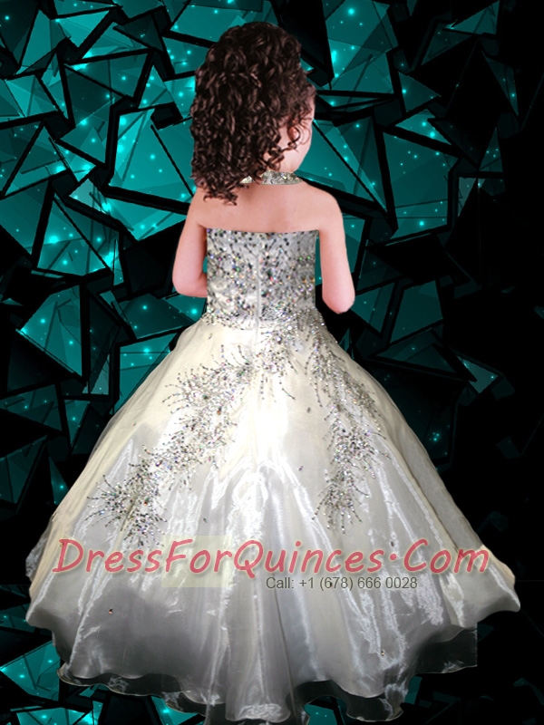 Pretty White Ball Gown Halter Beading Long Little Girl Pageant Dress in White