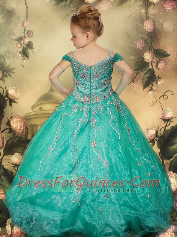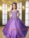 Purple Off The Shoulder Beading Little Gril Pageant Dress with Appliques
