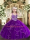 Purple Straps Lace Up Beading and Ruffles Little Girl Pageant Gowns Sleeveless