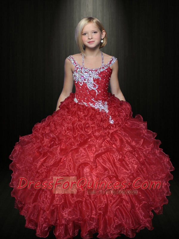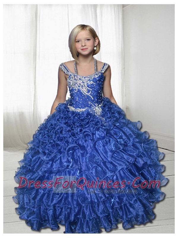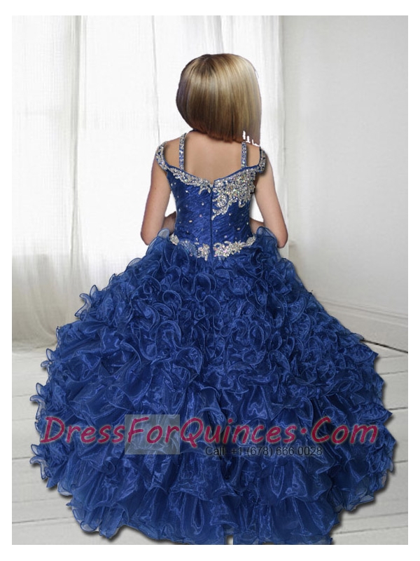 Royal Blue Ball Gown Straps Beading Little Gril Pageant Dresses