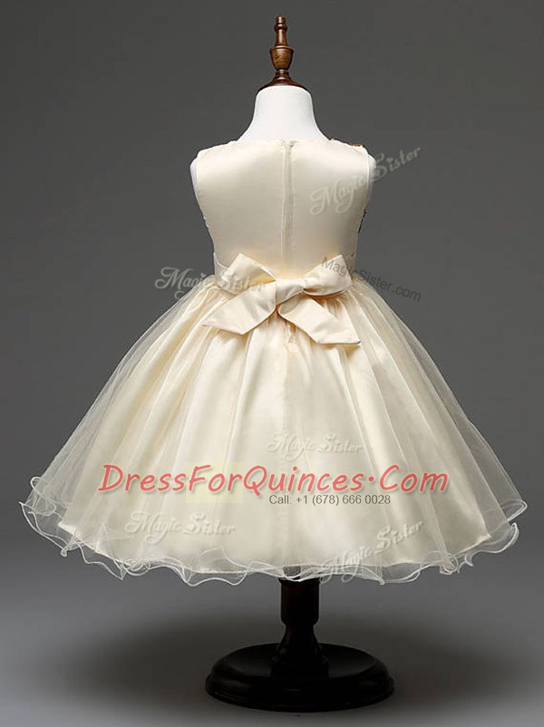 Scoop Sleeveless Organza Little Girls Pageant Gowns Sequins and Bowknot Zipper