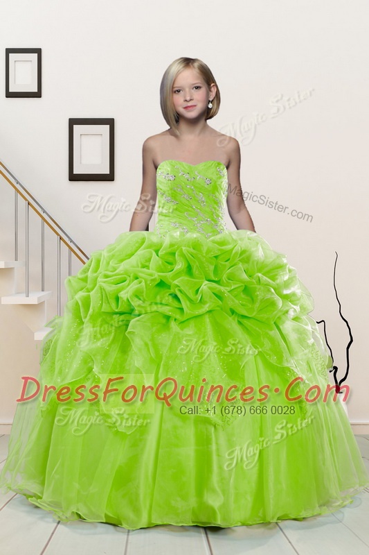Sexy Yellow Green Sleeveless Floor Length Beading and Pick Ups Lace Up Little Girls Pageant Dress Wholesale