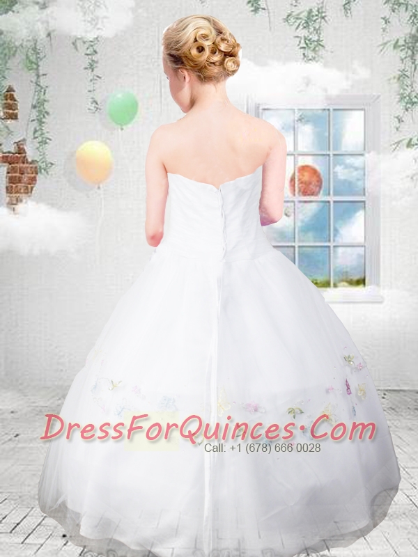 Simple Strapless Floor-length Embroidery Ball Gown Little Girl Pageant Dress