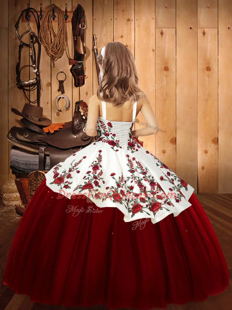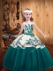 Stunning Teal Straps Lace Up Embroidery Girls Pageant Dresses Sleeveless