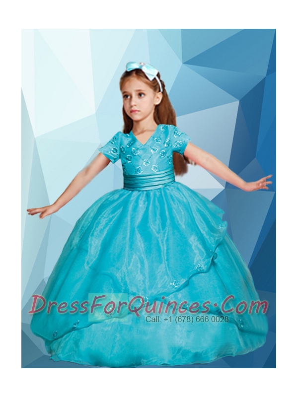 Sweet V-neck Ball Gown Little Girl Pageant Dresses with Embroidery