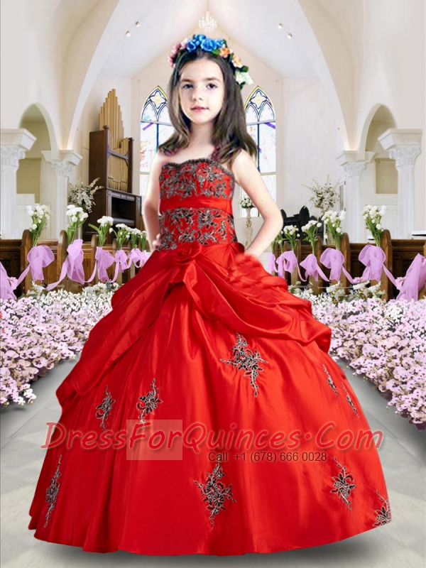 Sweet Wine Red Little Girl Pageant Dress with Appliques and Pick-ups