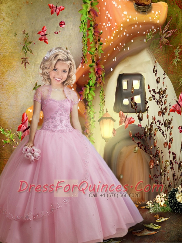 Sweetheart Pink Little Girl Pageant Dress with Appliques