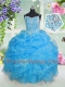 Unique Sleeveless Organza Floor Length Lace Up Child Pageant Dress in Baby Blue with Beading and Ruffles and Pick Ups