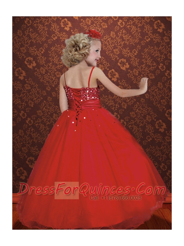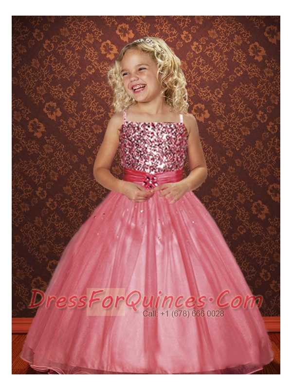 Watermelon Spaghetti Straps Ball Gown Beading Little Girl Pageant Dress for 2014