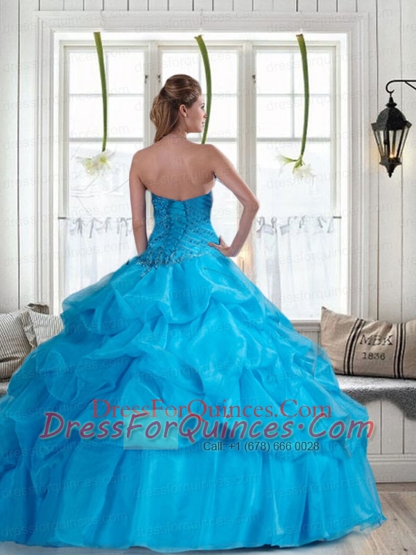 2014 Brand New Baby Blue Quinceanera Dresses with Beading and Pick-ups