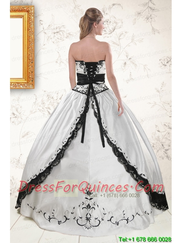 2015 Exquisite Embroidery Quinceanera Dresses in White and Black