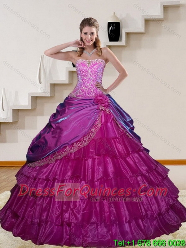 2015 Pretty Appliques and Ruffled Layers Quinceanera Dresses in Fuchsia
