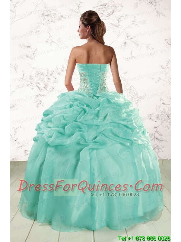 2015 Pretty Puffy Apple Green Sweet 16 Dresses with Beading