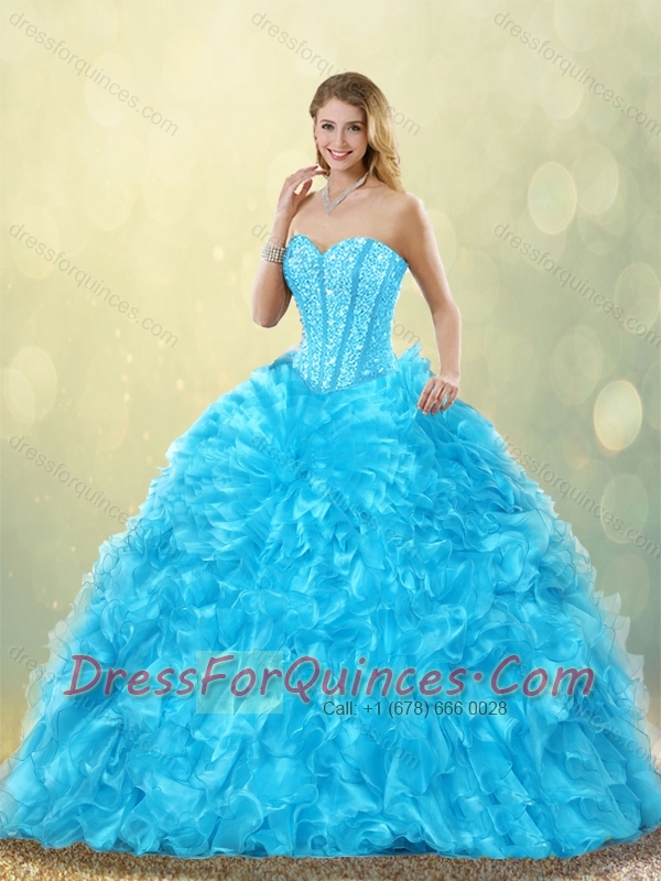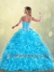 2016 Pretty Aqua Blue Detachable Quinceanera Dresses with Beading