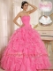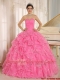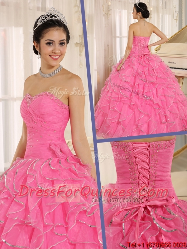 2016 Pretty Ruffles and Beading Quinceanera Dresses in Rose Pink