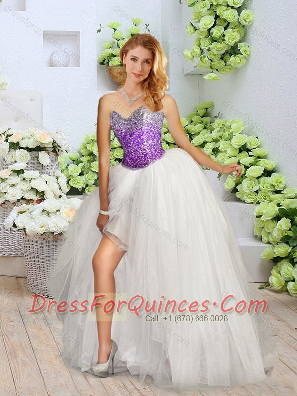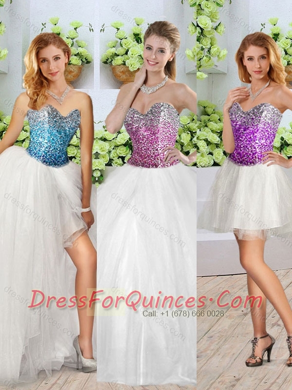 2016 Pretty White Detachable Quinceanera Dresses with Sequins and High Slit