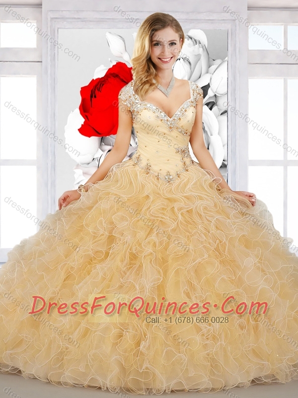 2016 Top Selling Puffy Straps Sweet 16 Dresses with Beading and Ruffle