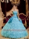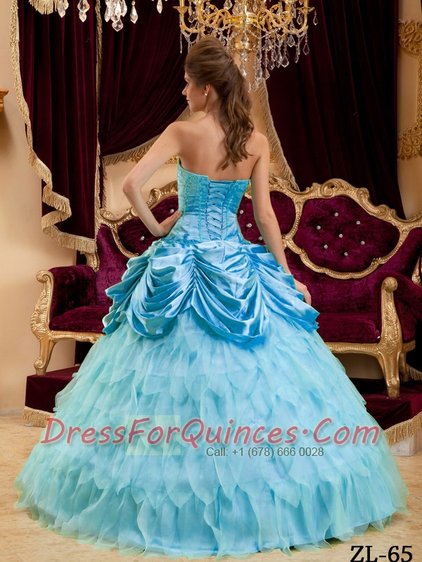 Aqua Blue Ball Gown Strapless Pretty Quinceanera Dresses with Ruffles Taffeta and Organza