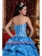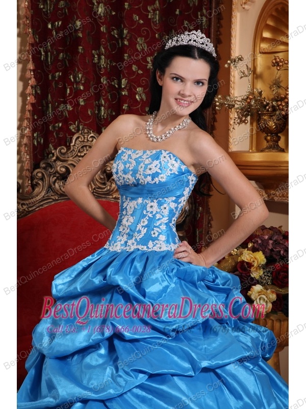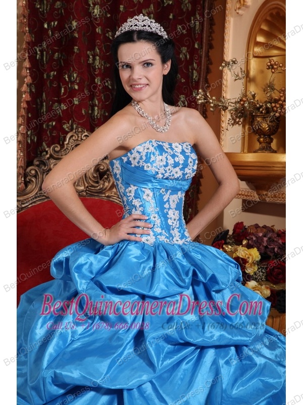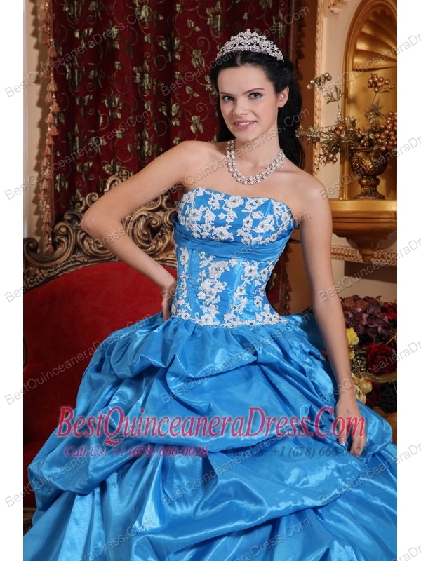 Baby Blue Ball Gown Strapless Floor-length Taffeta Appliques Quinceanera Dress