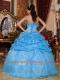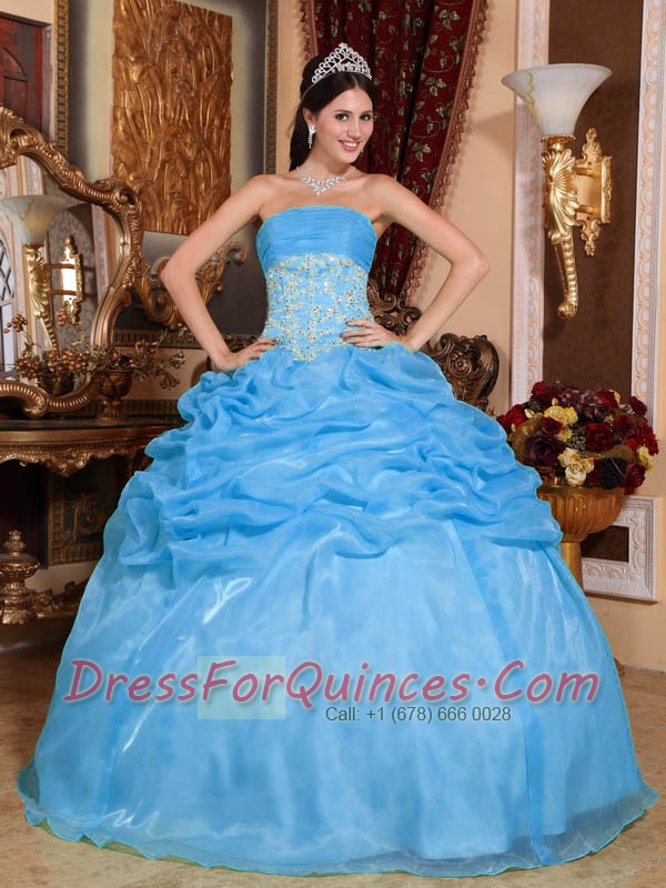 Baby Blue Ball Gown Strapless Pretty Quinceanera Dresses with Organza Appliques