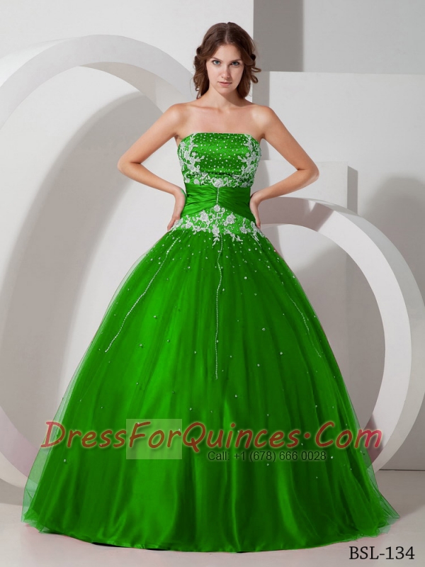 Ball Gown Strapless Pretty Quinceanera Dresses with Taffeta and Tulle Appliques and Beading