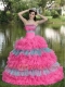 Beaded Decorate Bust Sequins Pretty Quinceanera Dresses with Organza Multi-color Strapless Tiered Sweet