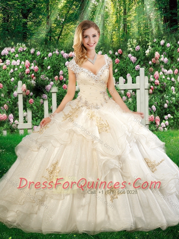 Beautiful Straps Champagne Quinceanera Dresses with Beading and Appliques