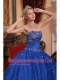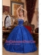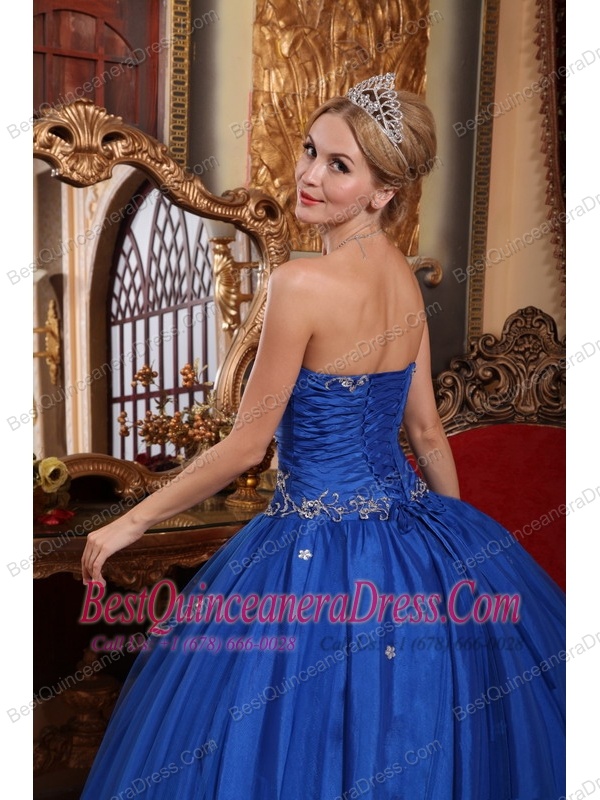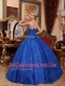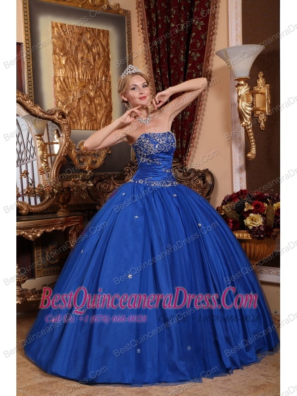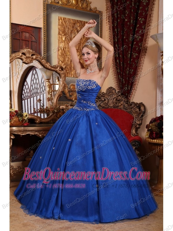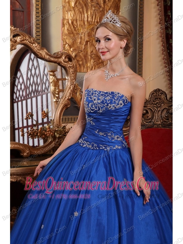 Blue Ball Gown Strapless Floor-length Taffeta and Tulle Appliques Quinceanera Dress