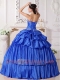 Blue Ball Gown SweetheartPretty Quinceanera Dresses with Taffeta Beading and Ruch Detachable
