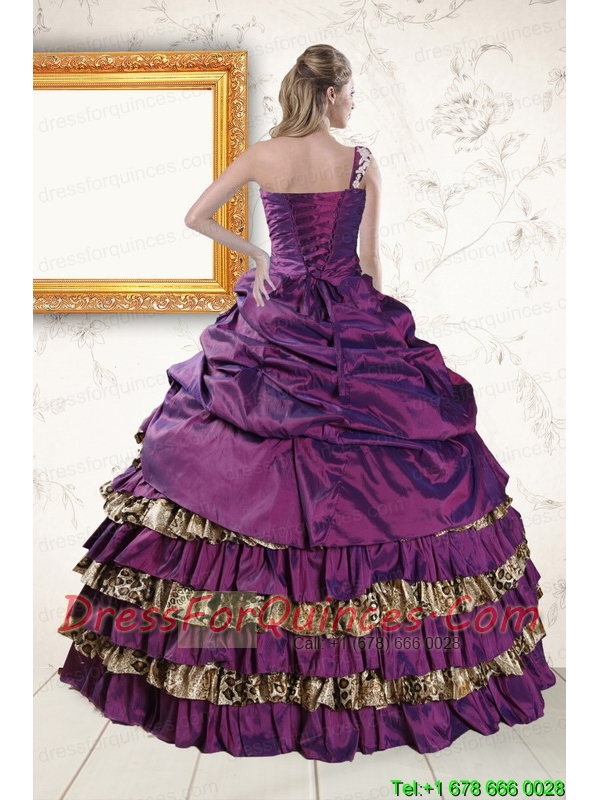 Classic One Shoulder Quinceanera Dresses with Beading and Leopard