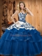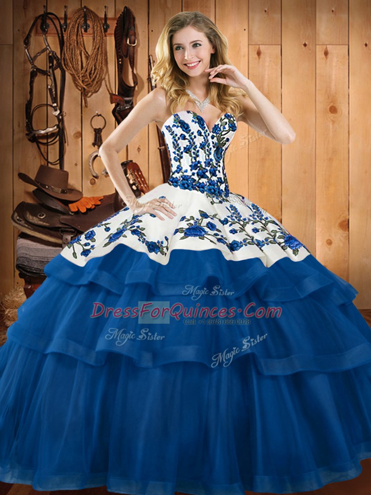 Colorful Blue Sweet 16 Dress Military Ball and Sweet 16 and Quinceanera with Embroidery Sweetheart Sleeveless Sweep Train Lace Up
