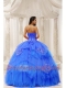 Custom Made Aqua Blue Sweetheart Embroidery For Pretty Quinceanera Dresses