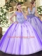 Cute Lavender Scoop Zipper Beading and Appliques 15th Birthday Dress Sleeveless