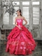 Discount Sweetheart Appliques and Pick Ups Coral Red Quinceanera Dress