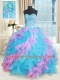 Dramatic Beading and Appliques and Ruffles Sweet 16 Dress Multi-color Lace Up Sleeveless Floor Length