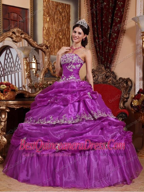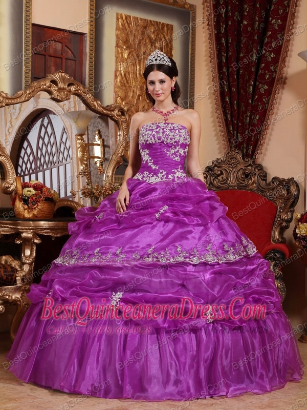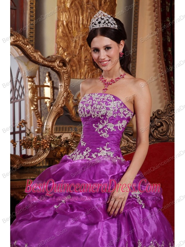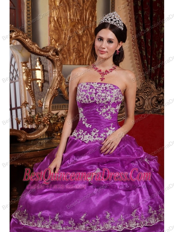 Elegant Ball Gown Strapless Floor-length Organza Appliques Quinceanera Dress