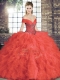 Exquisite Floor Length Lace Up Vestidos de Quinceanera Coral Red for Military Ball and Sweet 16 and Quinceanera with Beading and Ruffles