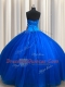 Extravagant Royal Blue Tulle Lace Up Quinceanera Dresses Sleeveless Floor Length Beading and Appliques
